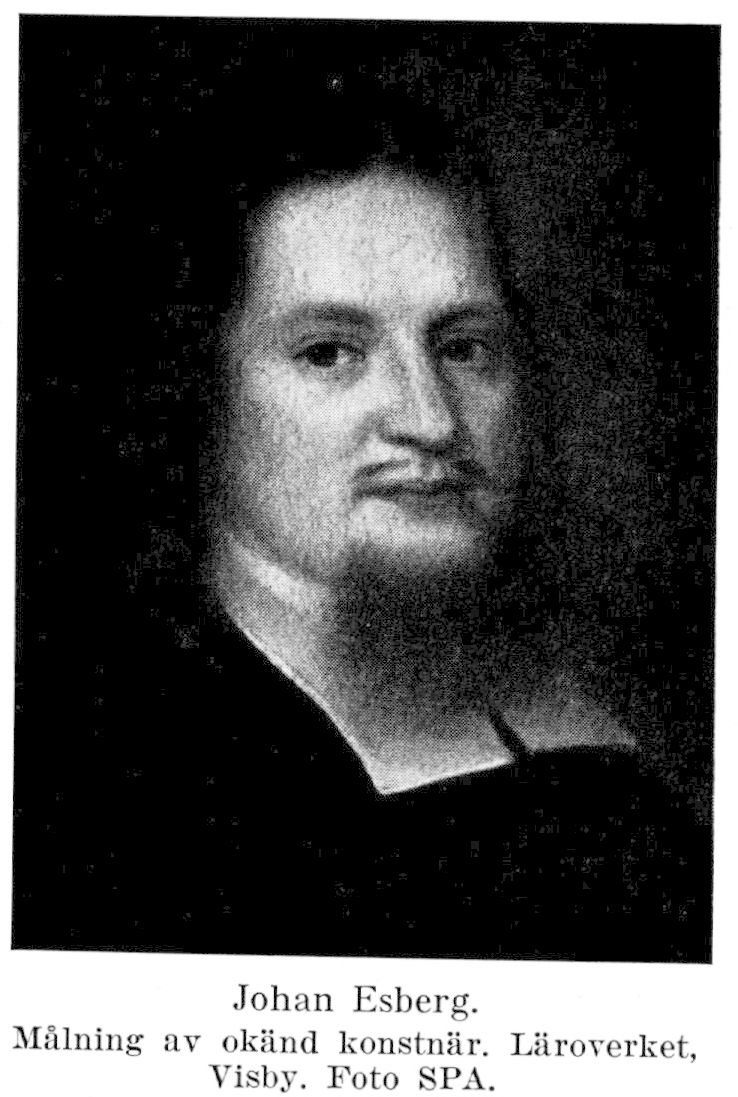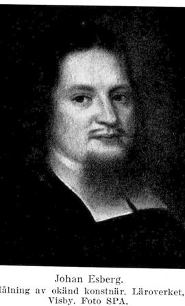 Johan Esberg (Johannes Esbergius), f. 2 april 1665 i Kumla sn (ör.), d. 17 april 1734 i Visby. Föräldrar: kyrkoherden Andreas Laurentii Edsbergius och Glara Fogdonia. Student vid Uppsala univ. 6 okt. 1677; fil. magister där 10 dec. 1685; studier utomlands 1686–87, 1689–94; student i Giessen 28 jan. 1691; teol. doktor där 2 april s. å.; kyrkoherde i Almunge 28 febr. 1695; kontraktsprost 1697; professor i grekiska vid Uppsala univ. 8 febr. 1698; preses vid prästmötet i Uppsala 1699; teologie professor och kyrkoherde i Gamla Uppsala 23 juli 1703; universitetets rektor ht. 1703 och vt. 1707; superintendent på Gotland 21 april 1711 (tilltr. 3 sept. s. å.).