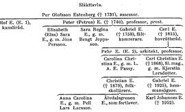 Ätten E. fortlever genom professor Peter E:s son hovrättsrådet Carl E. (f. 1728, d. 1815). Denne deltog i dåtida diskussion om nyodling och folkökning genom en uppmärksammad skrift om »Svenska folkbristens orsaker och botemedel» (1754). Han anmärkte där på svårigheten att anlägga torp och föreslog, att varje hemmansbrukare skulle få upprätta så många torp han förmådde. Vid 1760 års riksdag väckte Carl E. oerhört uppseende genom att i sina två vid adelns plenum 27 nov. upplästa memorial skarpt angripa rådet för att kriget börjat utan ständernas hörande. Som hovrättsråd i Svea hovrätt gjorde Carl E. 10 nov. 1773 ett uttalande, som han råkade illa ut för. Det gällde frågan, om tryckfrihetsförordningen 1766 upphävts genom RF 1772 eller ej. Han hävdade då i misshagliga ordalag, att förordningen i väsentliga stycken ännu vore gällande, vilket orsakade Gustav III:s onåd, hovrätten fick order att varna Carl E. – Handlingar rörande hovrättsrådet E. finnas i Estenbergsarkivet på Stavsund i vol. 7–10, däribland talrika brev till honom. På K. biblioteket finnas bl. a. hans riksdagsmemorialer 1755–66 (sign. D 929). – En son till hovrättsrådet Carl E. var arkitekten professor Pehr E. (E. 2).
