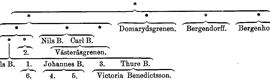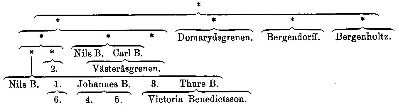 En andra huvudgren av släkten Bruzelius, den s. k. Domarydsgrenen, härstammar från en son i den ovannämnda Ingrid Bengtsdotters senare gifte med rusthållaren Per Olsson, kyrkoherden i Södra Ljunga och Hamneda Jonas B. (f. 1683, d. 1748), vilken antog sin halvbroders kyrkoherden Nils B: s' släktnamn. Helbroder till Jonas B. var rusthållaren på Domaryd Bengt Persson, far till bokhandlaren, sedermera lantbrukaren Peter Bergendorff (f. 1711, d. 1772) och hovkamreraren och domkyrkoinspektorn i Lund Johan Bergendorff (f. 1720, d. 1793), av vilka den förre blev stamfader för den ännu levande släkten Bergendorff. En systerson till Jonas B. och Bengt Persson var komministern i Bonstorp Bengt Bergenholtz (f. 1712, d. 1771), stamfader för den ännu levande släkten med detta namn. — På 1600- och 1700- talen funnos ett flertal kyrkoherdar i Växjö och Linköpings stift med namnet B. men de tillhöra ej denna släkt.