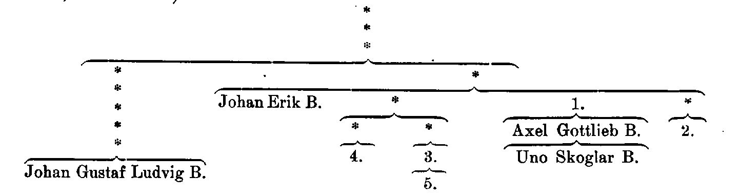 Källor: G. Elgenstierna, Sv. släktkalendern 1912—14, 18; L. M. V. Örnberg, Sv. slägt-kalender för år 1888 (1887). — Se i övrigt: ang. stadskomministern Gustaf B.: levnadsteckning av K. Hult i 2: a uppl. av Arboga krönika (1909); ang. borgmästaren i Örebro Johan Erik B.: Nerikes allehanda 18 apr. 1887 och G. Renholm, Sedt och händt (1901); ang. bankobokhållaren Axel Gottlieb B.: J. L. Höijer, Musiklexikon (1864) och T. Norlind, Allm. Musiklexikon, 1 (1916); ang. k. sekreteraren Skoglar B.: E. Malmsten, Anteckningar om Svea hovrätts arkiv (Meddel. fr. sv. riksarkivet, N. F., 1:33—35, 1914) och A. Silow, Den äldre arkivvården vid Stora Kopparberget (En bergsbok, tillägn, Carl Sahlin, 1921, s. 238—239).