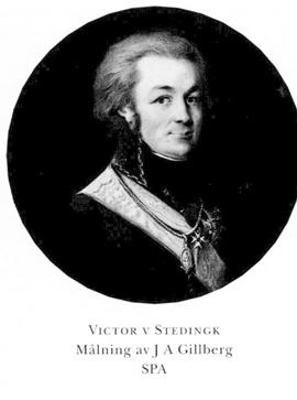 2 von Stedingk, Victor Carl Ernst Berend Heinrich (före natural v Steding), bror till S 1, f 11 nov 1751 i Pinnow, Sv Pommern, d 30 aug 1823 i Sthlm, Skeppsh. Förare vid Hamiltonska reg i Stralsund 62, studerade vid UU vt 65, kadett vid amiralitetet sept 65, sjöofficersex 25 april 68, permitterad för att idka utrikes sjöfart 68-74, löjtn vid örlogsflottan 17 nov 69, kapten där 12 sept 74, major vid örlogsflottan o artillerimajor vid sv eskadern av Arméns flotta 19 febr 77, permitterad för tjänstgöring som löjtn i fransk örlogstjänst 8 sept 78-83, överstelöjtn vid sv eskadern av Arméns flotta 24 sept 84, överste i armén 22 juli 90, överstelöjtn samt tygmästare i Åbo 9 dec 90, generaladjutant hos kungen 21 jan 93, konteramiral o chef för Åboeskadern av Arméns flotta 8 april 93, led av Rikets ärenders allm beredn 19 april 93-juni 97, v amiral 9 dec 02, led av Förvaltn av sjöärendena 25 april 03, chef för Arméns flottas eskader i Gbg 23 nov 07-15 juli 11, tjänstgörande generaladjutant för flottorna 27 mars 09-8 mars 12, amiral 29 juni 09, natural sv adelsman o frih 28 jan 11 (introd 13), chef för Förvaltn av sjöärendena o Flottornas konstruktionskår från 21 maj 11, för Arméns hela flotta o särsk dess sthlmseskader från 18 juni 11, led av komm ang ärendenas behandl i rikets kollegier okt 11-mars 12, deltog i riksdagarna 15-23, generalamiral från 11 maj 18.-LKrVA04.