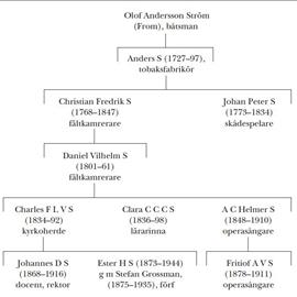 En son till S var Johannes Daniel S (1868–1916) som efter mogenhetsexamen i Kalmar 1887 fortsatte sina studier vid LU där han 1897 disputerade på en avhandling i filosofi. Han blev fil doktor s å och var sedan fram till 1911 docent i teoretisk filosofi. Livligt engagerad i studentlivet var han 1897 studentkårens ordförande och kom i denna egenskap att spela en framträdande roll i stridigheterna kring installationen av professor C V L Charlier (bd 8). Johannes S bedrev under studietiden en omfattande privatundervisning och 1895 knöts han som lärare till den 1848 grundade Lunds privata elementarskola. Från 1898 och till sin död var S rektor och styrelseordförande där.