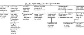 I sitt andra äktenskap hade Johan Eric P sju söner. Äldst av dem var Eric Axel P (1835–1912) som 1850–59 var elev och anställd hos K M Lundberg (bd 24, s 198) i Nyköping. Axel P etablerade sig 1859 som handlande i garn och vävnader i Eksjö, till en början i minut, sedan en gros. Rörelsen kom sedermera också att omfatta utsädesråg och gödningsämnen. Axel P var ledamot av stadsfullmäktige 1864–69, rådman 1869–1911 och landstingsman 1876–1905. Han innehade flera styrelseuppdrag i framför allt banker, bl a som ordf i styrelsen för Eksjö sparbank 1872–94. Han var ledamot av AK 1894–1902, där han var en av få stadsbor med anknytning till lantmannapartiet, och av FK 1903–06; i FK slöt han sig till det protektionistiska partiet. Han var ledamot av bevillningsutskottet 1900–02. Två av Axel P:s yngre bröder, Adolf Wilhelm P (1844–1900) och Hjalmar Adrian P (1848–1932), var under lång tid anställda hos honom och utvecklade senare liknande affärsmannakarriärer på andra småländska orter, där de fick åtskilliga lokala uppdrag, såväl privata som offentliga. Wilhelm P etablerade sig 1870 i Vetlanda med speceri- och diversehandel, vilken successivt utvecklades och överläts 1892. Han anlade 1891–92 en såg, där han företrädesvis framställde takstickor, och en kvarn där han började experimentera med förädling av havre, ortens huvudsäde, och som tillverkade de första ångpreparerade havregrynen i Sverige. Verksamheten ombildades 1894 till A Wilh P:s grynfabriksab med honom själv som VD och med ett aktiekapital på 165 000 kr. Han var vidare VD bl a i Östra härads folkbank (1897 ombildad till Hvetianda bankab) från 1878, i Hvetlanda-Säfsjö järnvägsab från 1883 samt i Ädelfors guldgrufveab. Han var pådrivande när Vetlanda blev municipalsamhälle 1887, var ordf i municipalstämman 1887–99 och hade flera andra offentliga uppdrag.