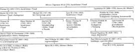 Michael och Lars M:s äldste bror, rådmannen i Ystad Martin M (1735–94), var en av Ystads främsta skeppsredare. Han var riksdagsman 1778–79 och 1786 och köpte 1786 säteriet Snogeholm i Sövde, Malm. Söner till honom var häradshövdingen i Bro, Håbo, Trögd och Åsunda (sedermera Upps:s södra domsaga) Joachim M (1767–98) och handelsmannen Hans Mathias M (1763–1851), som var svärson till sin farbror Michael M. Han importerade till Ystad stora mängder skinn från Bornholm och Jylland men var mest verksam som penningutlånare. M kom på äldre dagar på obestånd, uppsade 1833 sitt burskap och dog i fattigdom. Hans bror handelsmannen Thomas M (1759–91) i Ystad var far till grosshandlaren Martin Töijer (i dopboken Tögerson) M Thomasson (1790–1840) i Sthlm. Denne var 1840 riksdagsman och ledamot av konstitutionsutskottet, borgarståndets enskilda besvärsutskott, opinionsnämnden och förstärkta statsutskottet. M tillhörde riksdagens ivrigaste oppositionsmän, men senare uppgifter, att han skulle ha verkat för att den avsatte Gustav IV Adolfs son prinsen av Vasa (bd 19, s 324) skulle bli konung i Sverige, anses vara grundlösa (Lindeberg). Han sköt sig under riksdagen, vilket torde ha haft samband med hans konkurs.